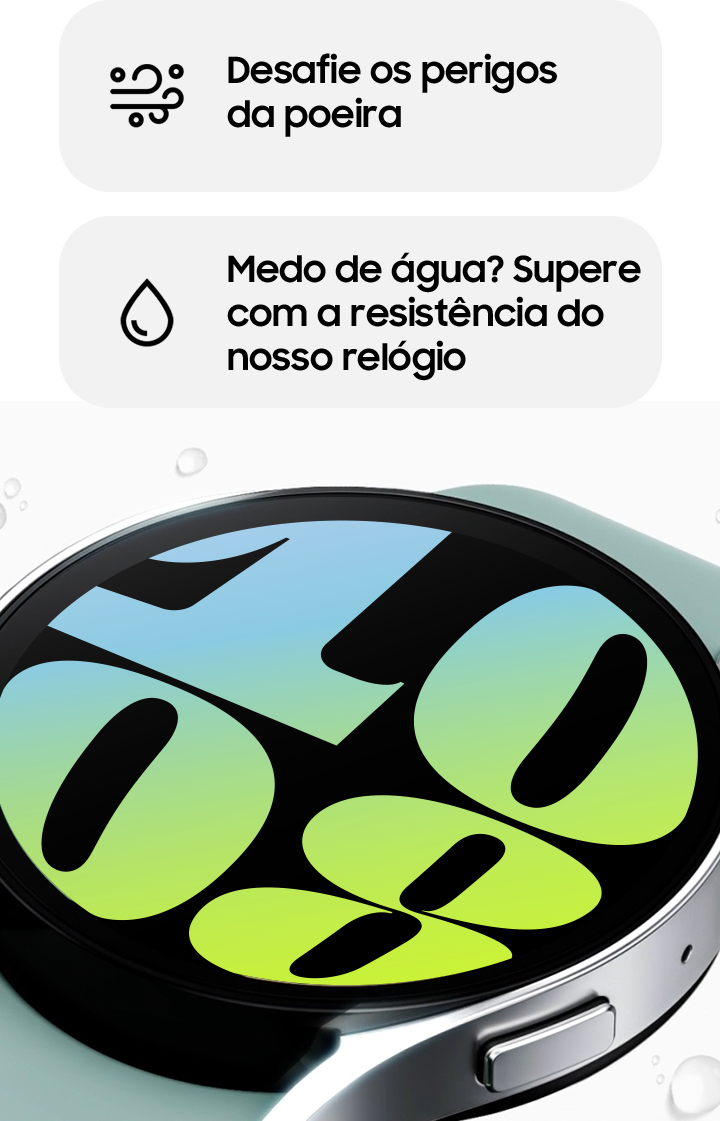 manuseio. Galaxy Watch6 fornece proteção (IP68) contra entrada de