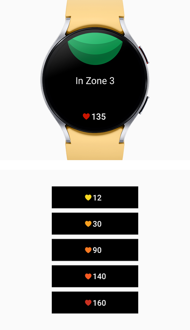 Defina sua própria Zona de Frequência Cardíaca personalizada ou comece a correr e deixe o Galaxy Watch6 ajustar sua frequência cardíaca com base em seu condicionamento físico, otimizando uma Zona de Frequência Cardíaca adequada para você. Uma vez configurada, você receberá notificações ao atingir sua meta de Zona de Frequência Cardíaca, garantindo que esteja na zona correta enquanto se movimenta, corre e faz exercícios de acordo com seu ritmo. 34